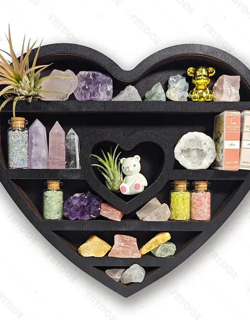 Embrace the power of love with this enchanting Double Loving Heart Crystal Wood Shelf!